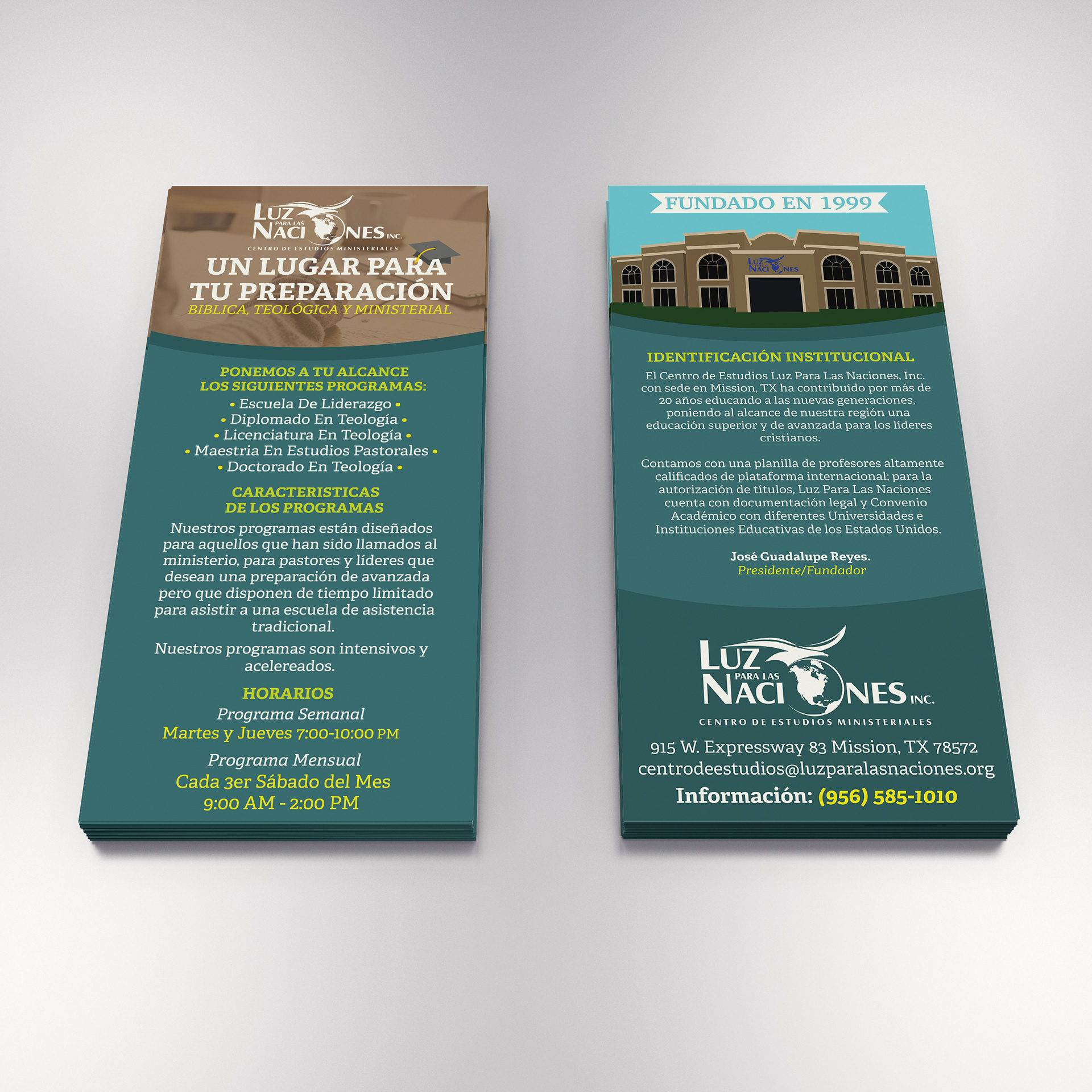 This was an informative flyer for Centro de Estudios Ministeriales about the programs they offer, dates and times, and additional information on who they are.